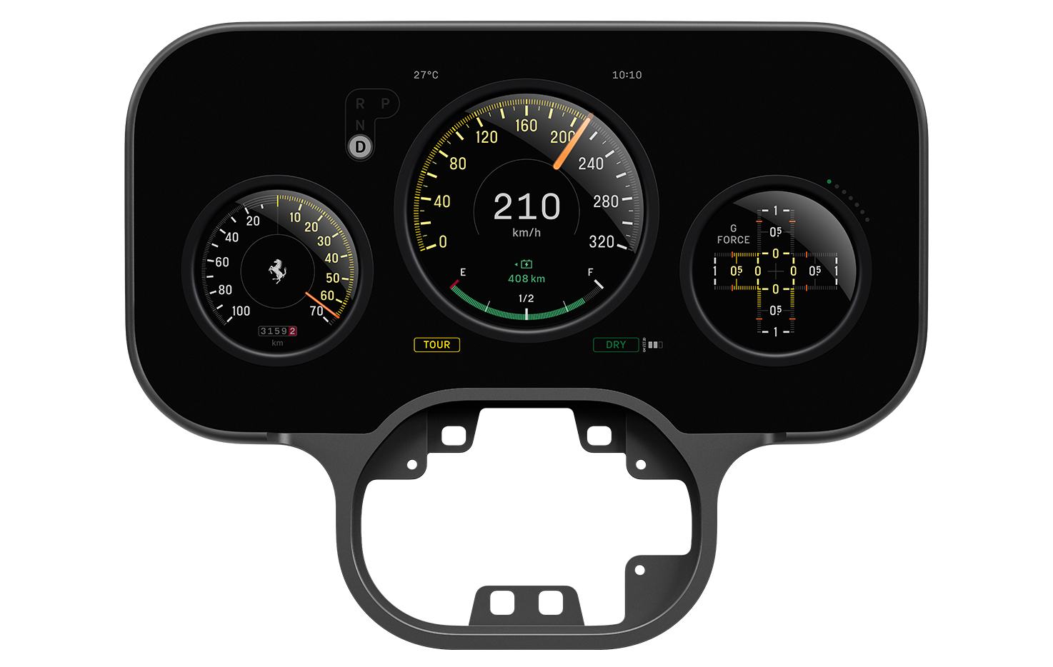 O interior é extramente limpo e minimalista. A complexidade eletrónica é surpreendente: Ecrãs retina stacked em cima uns dos outros, ecrãs OLED perfeitamente circulares desenhados do zero com a Samsung, e a lista continua. Existe uma precisão incrível neste "produto". Foi tudo pensado, todos os detalhes postos... é fascinante e inspirador. Só para dar um exemplo, os ecrãs do painel de instrumentos estão individualmente separados entre si. Ou seja, cada um dos três mostradores são um ecrã OLED redondo. E por baixo destes ecrãs existe um quarto ecrã OLED com cortes circulares para cada um destes mostradores, portanto toda aquela área à volta dos mostradores também é ecrã. Em vez de colocarem isto tudo num único ecrã, não, eles decidiram coloca-los separados, e deixar uma distância diferente entres os mostradores e o ecrã maior para criar efeito parallax... isto é absurdo. Como se isto não fosse suficiente, o vidro que é colocado por cima dos três mostradores também é ligeiramente curvo, portanto age ligeiramente como uma lente nos cantos, é incrível.