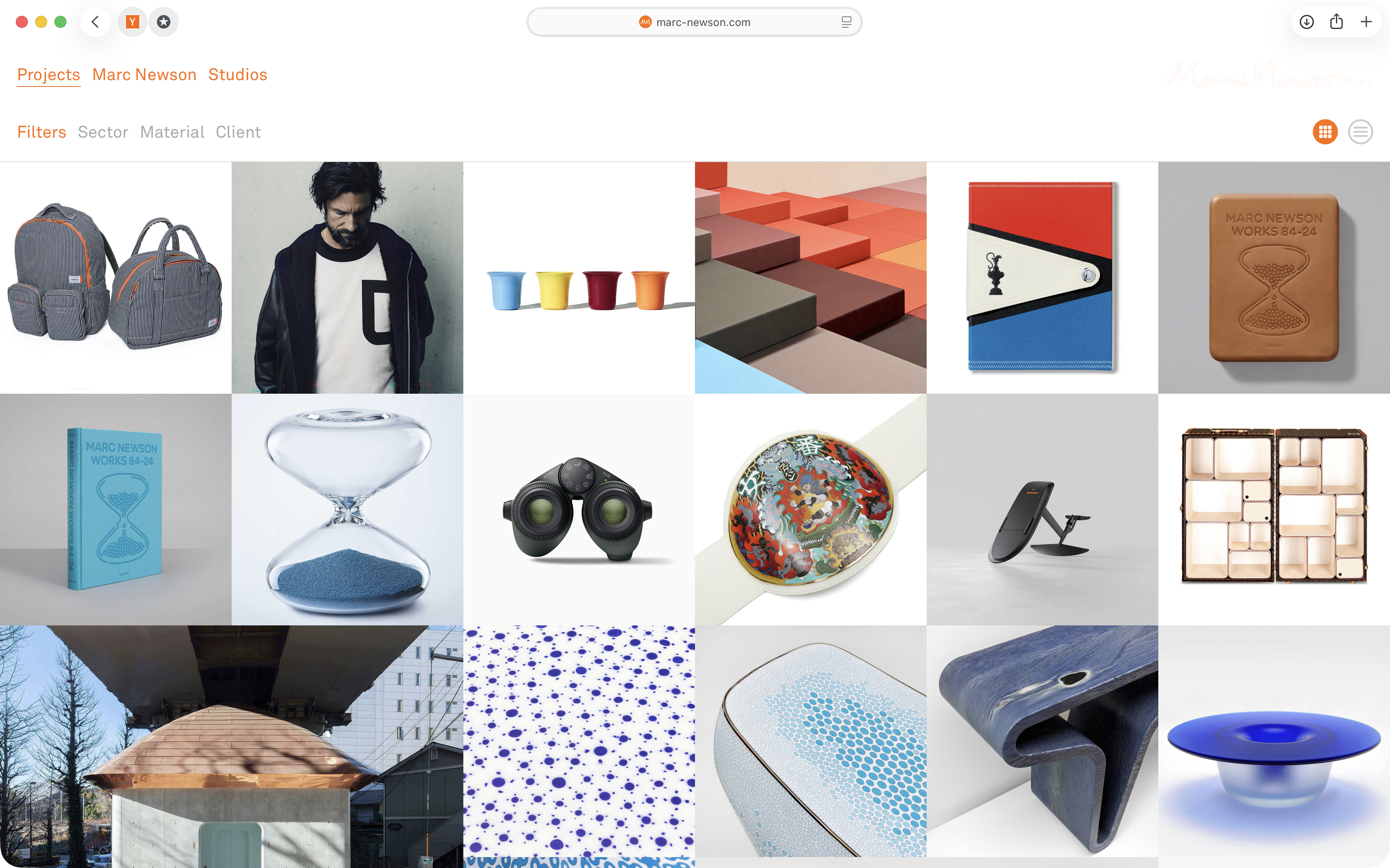Algo que amo, é que Newson tem um site onde mostra os projetos principais que trabalhou. E não só os objetos são perfeitos e obras de arte, o site em si é uma experiência.