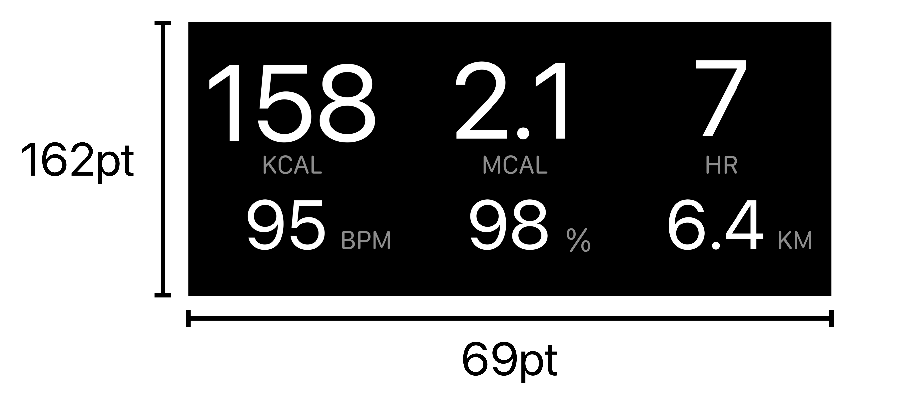 Abaixo deixo alguns mockups iniciais que fiz no Figma. A ideia para as primeiras complicações era deixar as coisas simples, como já disse. Não inventar gráficos nem nada demasiado complexo e que me iria roubar horas a desenhar. Quis começar com algo mais analítico e digital. As possibilidades são, quase literalmente, infinitas. As fontes são todas da familia San Francisco. Mas com algumas variações, algumas são SF Mono, outras SF Pro, e outras SF Pro Display Rounded.