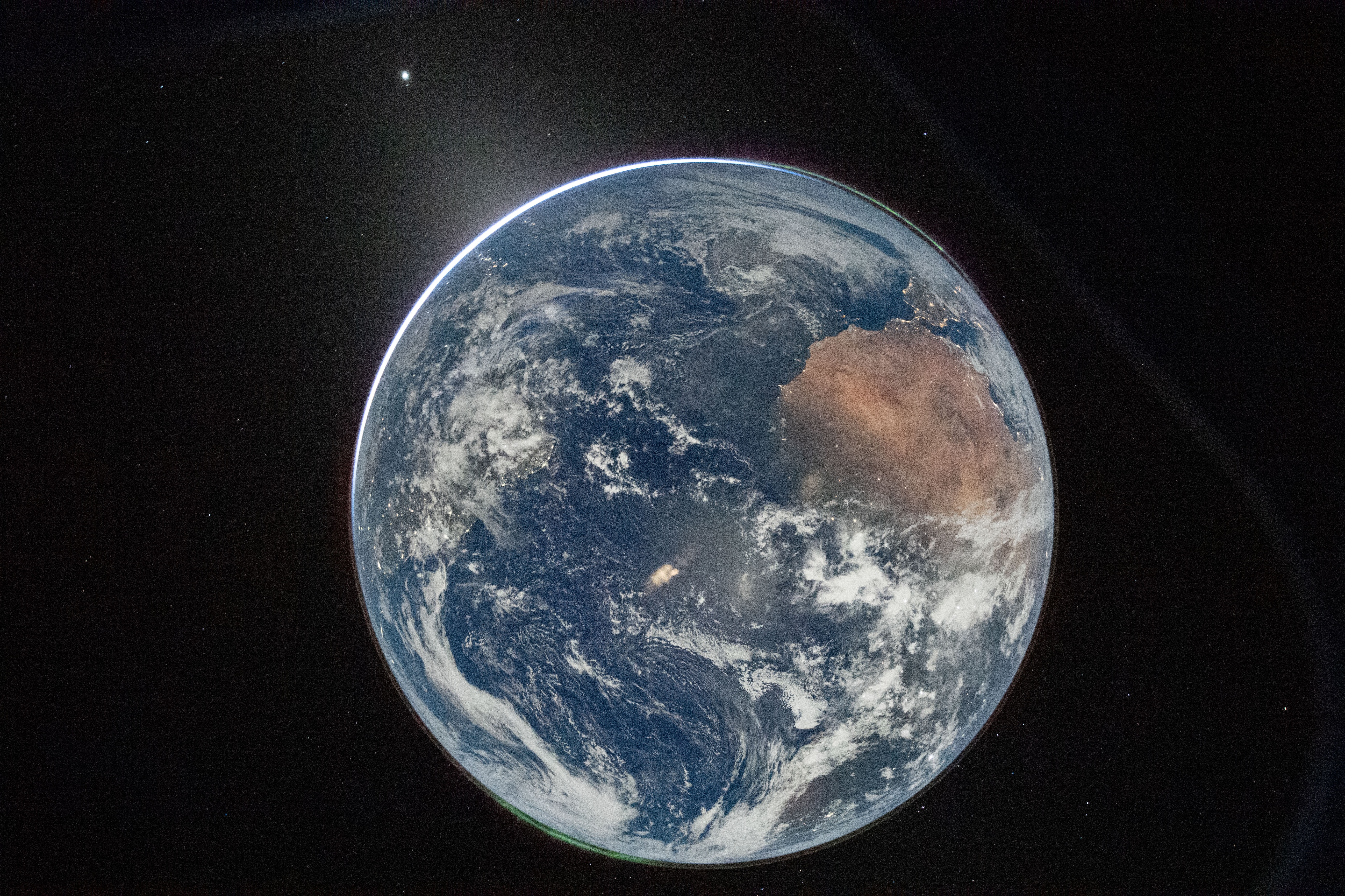 E finalmente chegaram as primeiras fotografias em alta resolução do Artemis 2! Esta primeira fotografia foi tirada com uma Nikon D5 com ISO a 51200. O que confundiu imensa gente é que esta foto foi tirada virada para a parte de noite da Terra, daí conseguirem ver as luzes acesas na Peninsula Ibéria no canto superior direito.